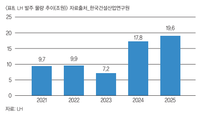 ÇöÀç Á¤ºÎ¿¡¼ °Ç¼³°æ±â ȸº¹°ú ÁÖÅðø±Þ ¾ÈÁ¤À» À§ÇÑ °ø°øÁÖÅà ¹ßÁÖ È®´ë¿¡ ³ë·ÂÇÏ¸é¼ ¿ÃÇØ ÀÌÈÄ Áö¼ÓÀûÀ¸·Î LH¹ßÁÖ¹°·®Àº Áõ°¡¼¼¸¦ º¸ÀÏ °ÍÀ¸·Î ¿¹»óµÈ´Ù. ½ÇÁ¦·Î Áö³ÇØ Á¤ºÎ°¡ ¹ßÇ¥ÇÑ ÁÖÅðø±Þ È®´ëÁ¤Ã¥¿¡ µû¶ó 2030³â±îÁö ¼öµµ±Ç¿¡ ÃÑ 135¸¸È£ ½Å±ÔÁÖÅÃ Âø°øÀÌ ÃßÁøµÇ°í ÀÖ´Ù.