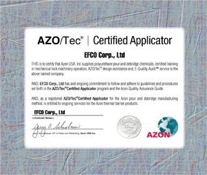 ¾ÆÁ¸ ǰÁúº¸ÁõÇÁ·Î±×·¥Àº Azon U.S.A¿¡¼ 15³â ÀüºÎÅÍ ¿î¿µÇؿ Azo/Tec Warranty ProgramÀ» ¹ÙÅÁÀ¸·Î Çѱ¹ ½ÃÀå »óȲ¿¡ ¸Â°Ô ½ÃÇàÇÏ´Â ÇÁ·Î±×·¥ÀÌ´Ù. ¾ÆÁ¸ ´Ü¿ÀÌ Àû¿ëµÈ âȣ ½Ã°ø ÈÄ 10³â °£ ÇÏÀÚ º¸Áõ ±â°£ÀÌ Àû¿ëµÇ¸ç ´Ü¿¹ÙÀÇ Àå±â ³»±¸¼º°ú ±¸Á¶ ¼º´ÉÀ» ³ôÀÏ ¼ö ÀÖ´Â Azo BraderTM, LancerTM ÀÌ¿ëÇÑ ±â°èÀû °áÇÕ(Mechanical lock) °ø¹ýÀÌ Àû¿ëµÈ ´Ü¿ âȣ¿¡ Àû¿ëµÈ´Ù. ¾ÆÁ¸ ǰÁú º¸Áõ ÇÁ·Î±×·¥¿¡´Â ÇÑÃþ ´õ °ÈµÈ ǰÁú °ü¸® ±âÁØÀ» Àû¿ëÇÑ ¾ÆÁ¸ ǰÁú ÀÎÁõ Á¦µµ¸¦ Åë°úÇÑ ¼¸²±â°è, ¼º°æ¿£ÅØ, Á¦ÀÌÁ¦ÀÌÅ×Å© 3°³ ¾÷ü°¡ Âü¿©ÇÏ¿© ¾ÆÁ¸ ´Ü¿ âȣÀÇ Ç°ÁúÀ» ÇÑ ´Ü°è ³ôÀÏ ¼ö ÀÖÀ» °ÍÀ¸·Î ±â´ëµÈ´Ù.