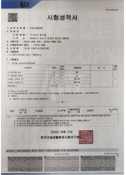 À̹ø ǰÁúÅ×½ºÆ®¸¦ À§ÇÑ ½ÃÇ輺Àû¼´Â ±¹³» °øÀÎµÈ ½ÃÇè±â°ü¿¡¼ Å×½ºÆ®¸¦ ½Ç½ÃÇßÀ¸¸ç, Çѱ¹ÈÇÐÀ¶ÇÕ½ÃÇ迬±¸¿ø¿¡¼ ¿ÀüµµÀ²°ú Èí½ÀÀ²(24½Ã°£ºÎÅÍ 168½Ã°£±îÁö), Çѱ¹°Ç¼³»ýȰȯ°æ½ÃÇ迬±¸¿ø¿¡¼ °¡½ºÇÔÀ¯À² »óÅÂ, °¡½ºÇÔÀ¯À² ³»Èļº, À̽½Á¡(³»Èļº Àü, ÈÄ), ¿°ü·ùÀ²(U)µîÀÇ ½ÃÇè°úÁ¤À» °ÅÄ¡°í ¿ì¼öÇÑ Ç°ÁúÀÇ ¼ºÀû¼¸¦ ¹Þ¾Ò´Ù.