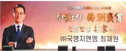 ¢ß±¹¿µÁö¾Ø¿¥ ÃÖÀç¿ø ´ëÇ¥ÀÌ»ç, Á¦1ȸ Àü¹®°Ç¼³ÀÇ ³¯ '¸í°¡(٣ʫ)' ¼ö»ó"