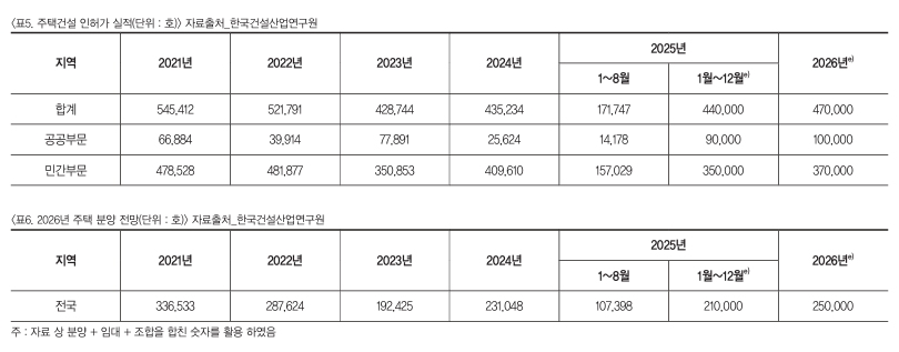 2026³â ¿ÃÇØ ±¹³» âȣ½ÃÀåÀº °Ç¼³°æ±â¿Í ÁÖÅýÃÀåÀÇ Àü¹æ»ê¾÷ ħü¿¡ ¿µÇâÀ» ¹ÞÀ¸¸ç ¾÷Ȳ ȸº¹Àº ´Ù¼Ò ´õµð°Ô ÁøÇà µÉ °ÍÀ¸·Î Àü¸ÁµÇ°í ÀÖ´Ù. ¿ÃÇØ °Ç¼³¼öÁÖ´Â Áö³Çغ¸´Ù Áõ°¡ÇÒ Àü¸ÁÀÌÁö¸¸ °ø»çºñ »ó½Â µî¿¡ µû¶ó ¹Î°£ºÎ¹® ¼öÁÖ ¹°·® Áõ°¡´Â Á¦ÇÑÀûÀÏ °ÍÀ¸·Î ¿¹»óµÇ´Â »óȲ¿¡ ½Å³âÀ» ¸Â¾Æ ÃÖ±Ù °Ç¼³°æ±â ÁöÇ¥ ºÐ¼®°ú ±¹³» âȣ½ÃÀå µ¿Çâ°ú Àü¸Á¿¡ ´ëÇØ Á¤¸®ÇØ ºÃ´Ù.